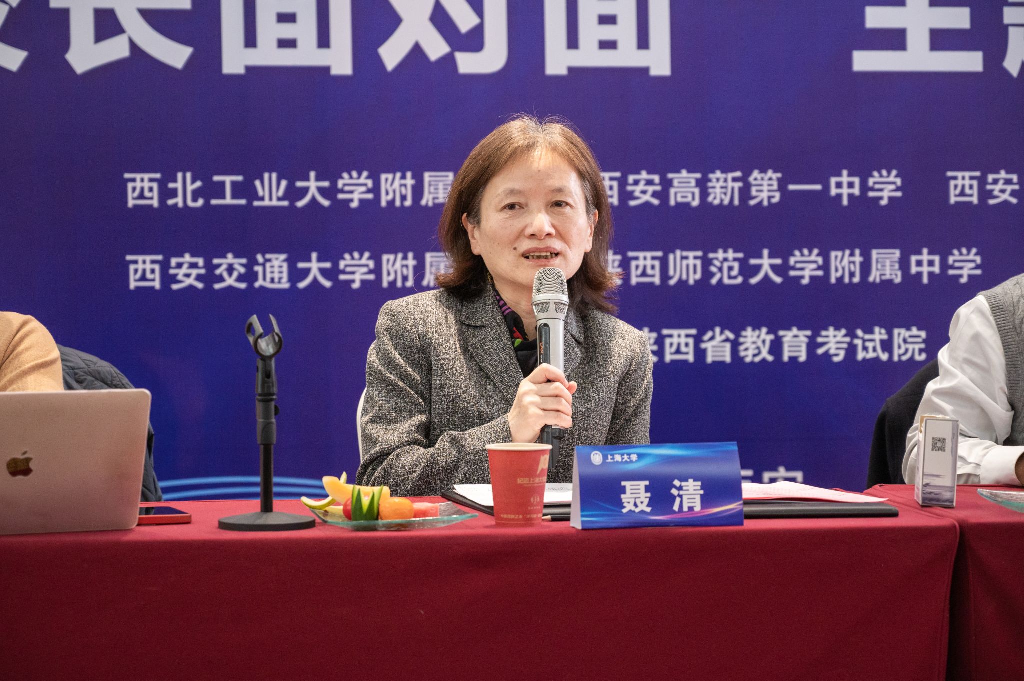 与会的各顶尖高中校领导分别为贯通“双高”推进全面发展的人才培养建言献策,西北工业大学附属中学李晔副校长表示通过此次活动她对MG冰球突破官网网站有了全新和全面的了解,希望MG冰球突破官网网站进一步加大宣传力度和途径去吸引优质生源;西安高新第一中学刘忠国副校长就“高中—高校”如何进行贯通式人才培养及资源共享分享了自己的观点;西安中学薛党鹏副校长高度认同MG冰球突破官网网站通识教育与专业教育互相结合的培养模式,并表示会培养好、动员好高三学子,争取为上大输送更多的优秀学生;西安交通大学附属中学校长助理焦战武、西安市铁一中学政教主任田群向等认为高校可以抓住关键时间节点做好关键事,利用好在校生资源走进中学校园,面向广大家长和考生进行聚焦宣传,并希望MG冰球突破官网网站能进一步扩大在陕的招生计划。