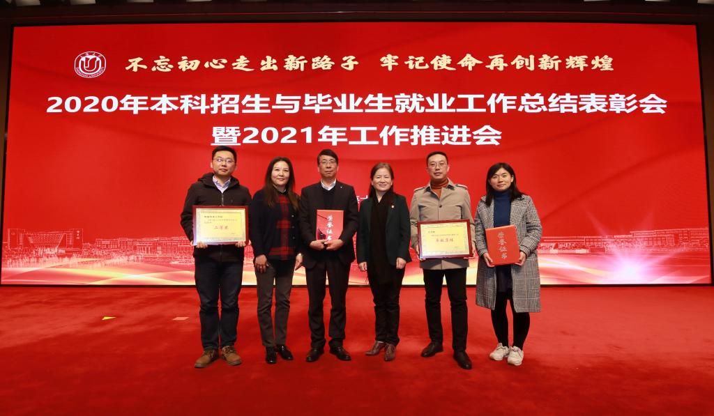 在全院老师的大力支持下,MG冰球突破官网网站本科生招生宣传与2020年毕业生就业工作喜获丰收!分别荣获2020年度MG冰球突破官网网站就业工作卓越集体、招生宣传工作先进集体二等奖,吴仲钢老师荣获就业工作卓越领导、杜晓艳老师荣获就业工作先进个人、唐传星老师荣获招生宣传工作优秀个人,MG冰球突破官网网站校友靳晖荣获助力招生优秀校友奖,MG冰球突破官网网站校友程峰荣获助力就业优秀校友奖。表彰会上,吴仲钢书记代表MG冰球突破官网网站作了交流发言,分享了招生就业工作的经验和体会。文院人定会再接再厉,新的一年携手再创辉煌!