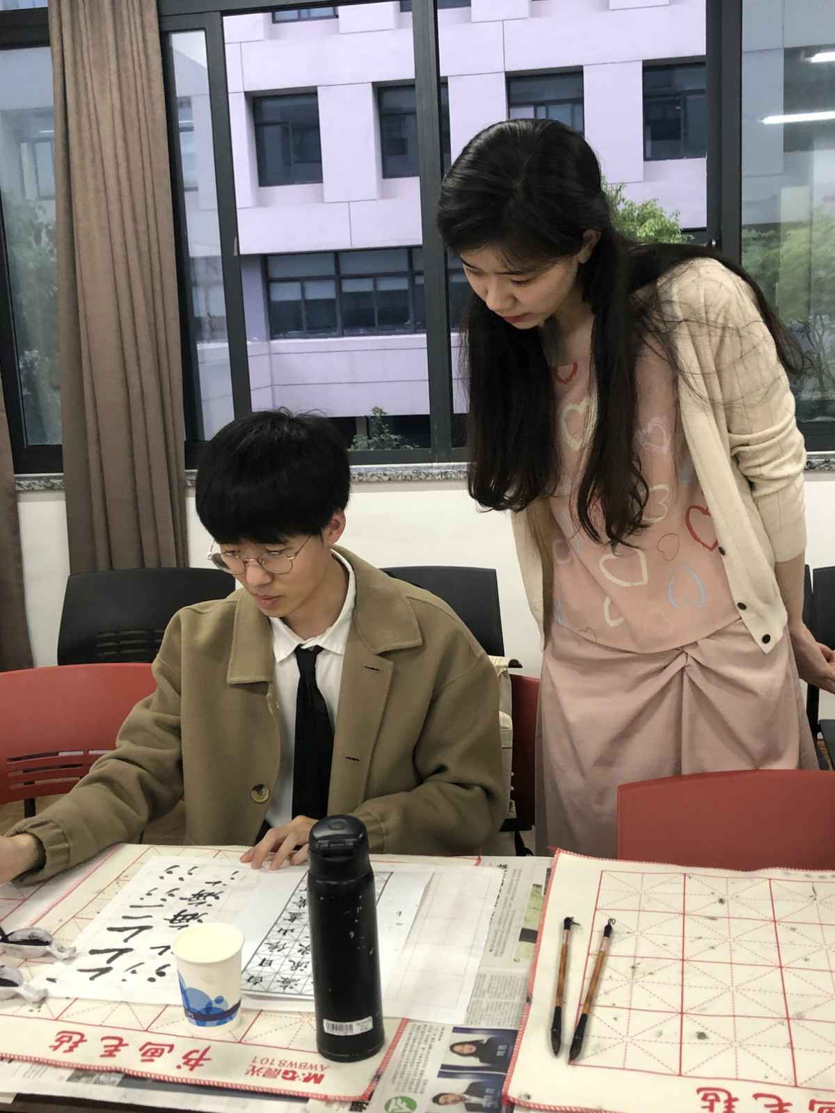 本学期的书法课程教学内容已全部结束,六月初将举行“中外学生书法兴趣坊”结课仪式,为参加活动满三次及以上的同学颁发“优秀学员证书”,同时进行一个小型书法比赛,书写内容为王之涣《登鹳雀楼》一诗。欢迎各位“书法兴趣坊”学员和书法爱好者参与。