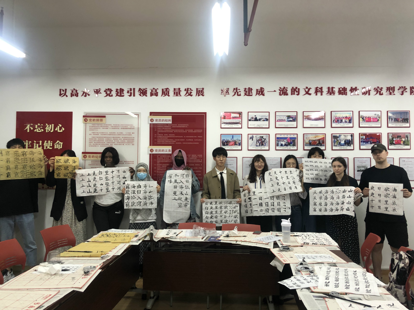 5月13日晚18点,MG冰球突破官网网站“中外学生书法兴趣坊”第九期活动在MG冰球突破官网网站206党建中心成功举办,MG冰球突破官网网站国际学生辅导员郭鸣老师与十五位中外学生共同参与了本次活动。