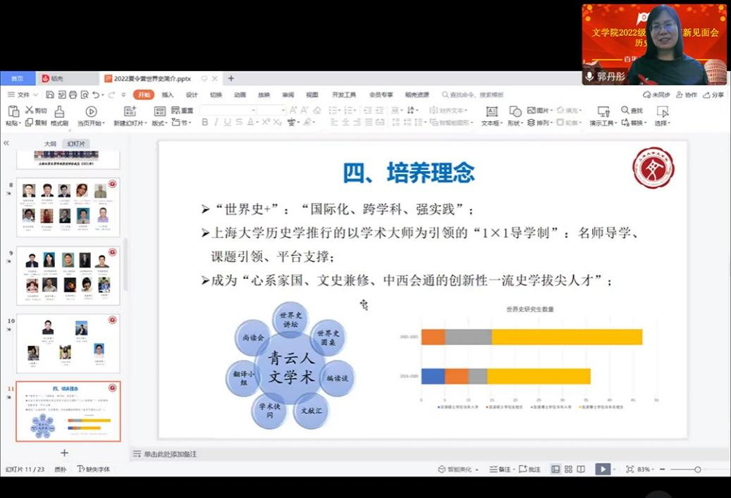 为帮助研究生新生更好地适应研究生阶段学习生活,2022年9月9日上午9点整,MG冰球突破官网网站2022级研究生迎新见面会历史系专场以线上会议的形式成功举办。MG冰球突破官网网站副院长宁镇疆,历史系副主任舒健、杨长云,历史系教授郭丹彤、郭红、黄保罗、肖清和,青年教师黄凯、焦姣出席本次见面会,MG冰球突破官网网站历史系、政治学2022级研究生新生参与本次活动。活动由历史系副主任杨长云主持。