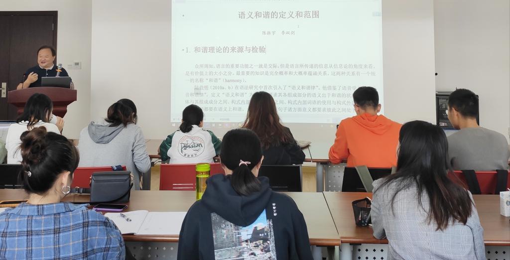 10月21日上午,MG冰球突破官网网站“多维视野下的语言学研究高端讲坛”第三场拉开序幕,复旦大学中国语言文学系教授、博士生导师、汉语言教研室主任、MG冰球突破官网网站兼职教授陈振宇,应我校MG冰球突破官网网站的邀请来做题为“汉语中的语义和谐”的专题讲座。此次讲座由倪兰副教授主持,四十余名师生参加了此次讲座。